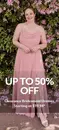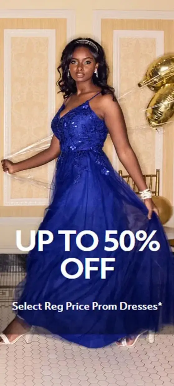 Hurry in and get up to 50% off on select regular price prom dresses in store.